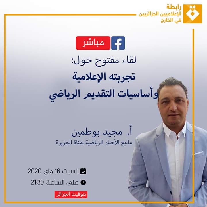 الإعلامي مجيد بوطمين في بث مباشر عبر صفحة رابطة الإعلاميين الجزائريين في الخارج