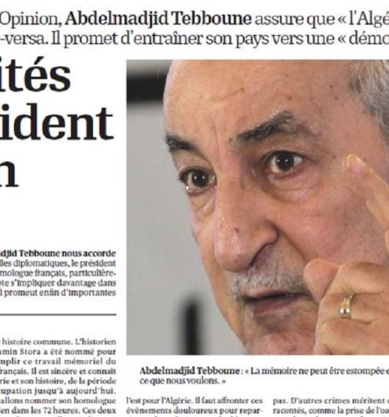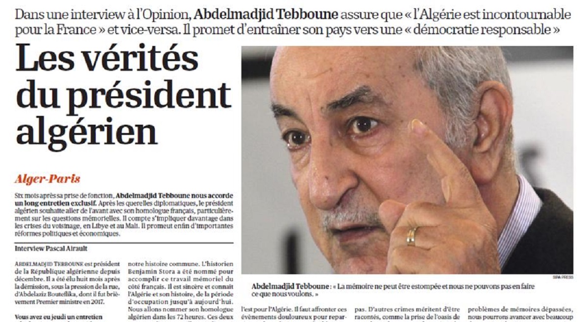 Après France24, c’est au tour du quotidien Français l’Opinion que le Président de la République, Monsieur Abdelmadjid Tebboune a accordé un entretien.