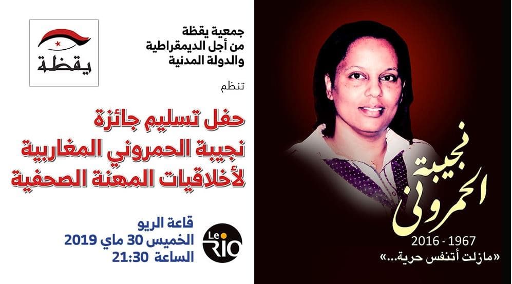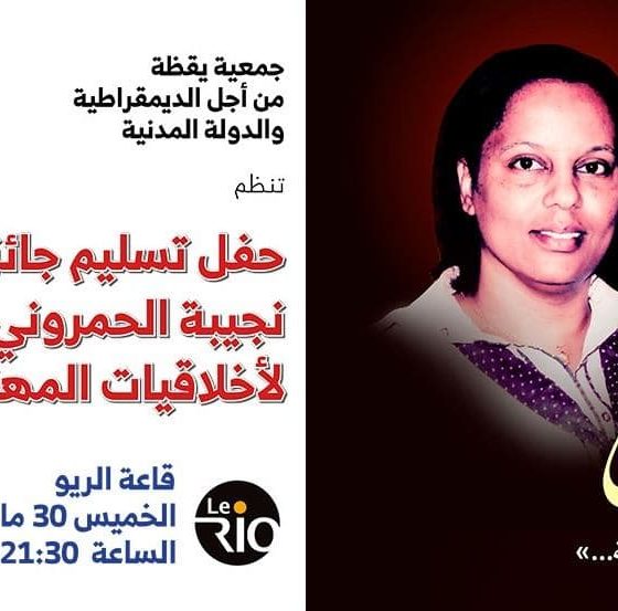 Par ailleurs, l’association est consciente que cette distinction, qui sera organisée chaque année ; à l’occasion de l’anniversaire du décès de la journaliste Najibah Hamrouni (29 mai 2016) ; contribuera à la réalisation d’un des rêve s de la défunte et attend avec impatience ses collègues et collègues ; sensibiliser aux avantages du respect de l’éthique journalistique et de leur impact positif sur la gouvernance, l’avenir et le statut des journalistes marocains dans leurs sociétés.